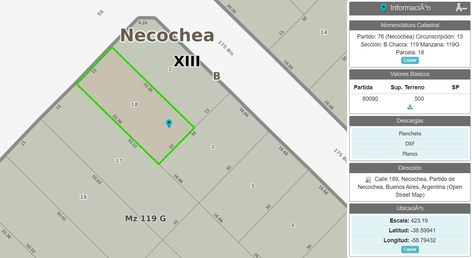 Gran lote en venta en Villa Los Delfines, Necochea, Prov. de Bs. As. sobre Av. 58 (Blvd. Sarmiento), entre calles 175 y 175bis, de 500m2, Partido: 76 (Necochea) Circunscripción: 13, Sección: B, Chacra: 119, Manzana: 119G, Parcela: 18, Partida: 80090.