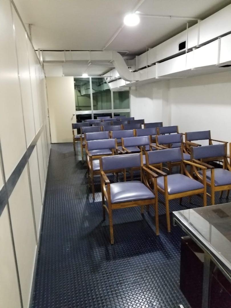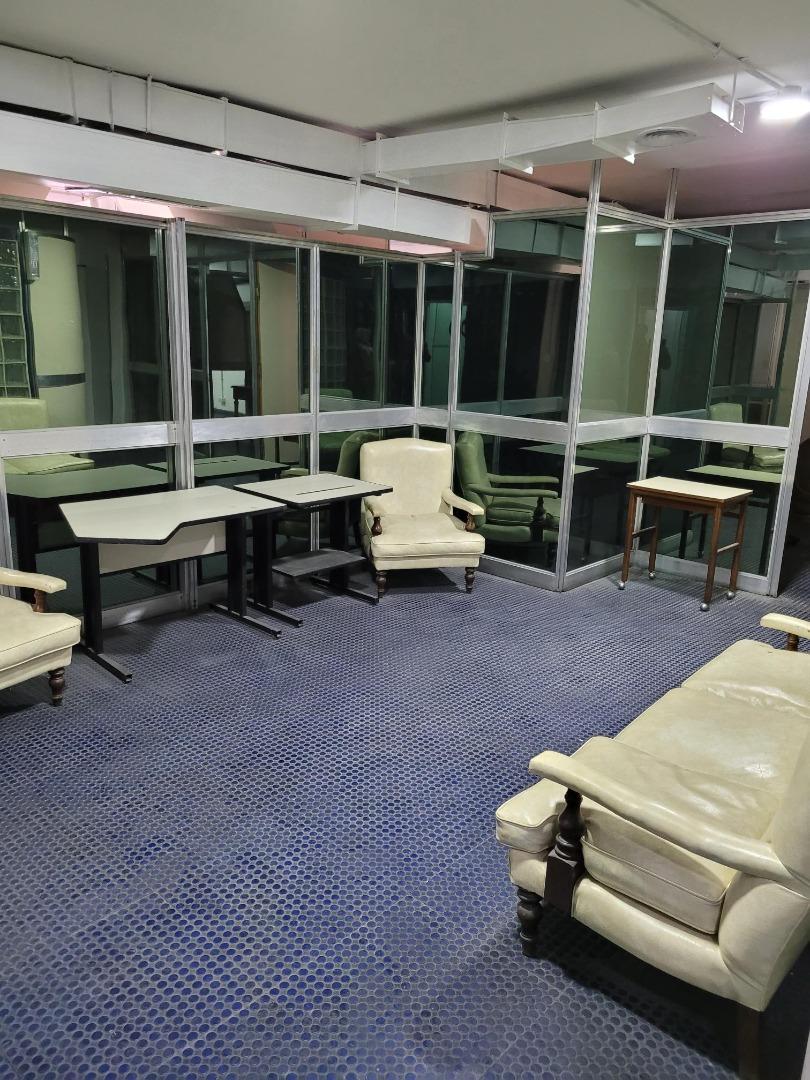 Las oficinas tienen pisos tipo flexi-plast en perfecto estado, luminarias y diversidad de escritorios de época, sillas, mesas de directorio y pupitres. Todo en muy buen estado.