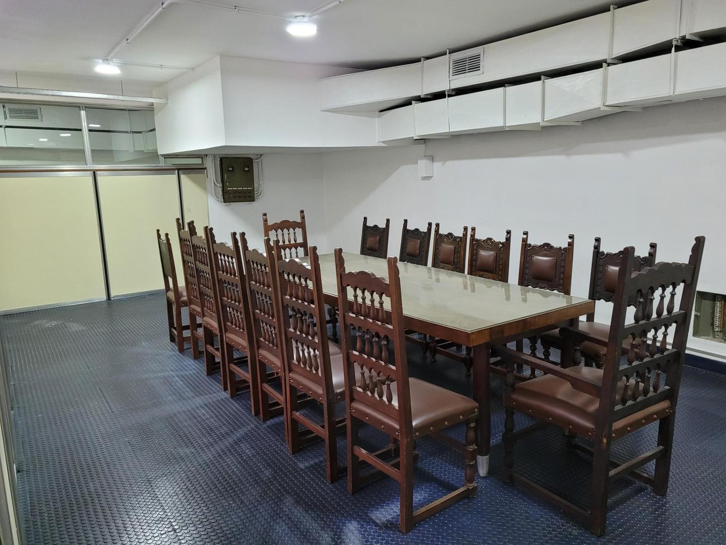 El sector del frente posee recepción, varios privados y salas (4 de ellos al frente), y baños en paliers (no comparte con nadie); se puede comunicar internamente con otras oficinas que dan sobre el lateral norte del piso y poseen ventanas al aire y luz, también presentan variedad de privados y 2 salones grandes para juntas de directorio o aulas académicas. Baño en palier de uso exclusivo.